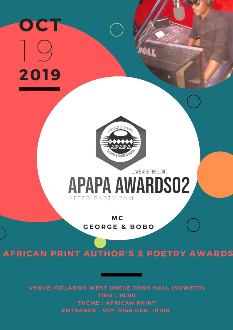 The African Print Author’s & Poet Awards (APAPA) will be hosting their second annual awards at Uncle Toms Hall inOrlando West, Soweto on 19 October. The APAPA awards will be celebrating and honoring artists in poetry and publishing industry across the African continentincluding Angola, Nigeria, Zimbabwe and Lesotho. The awards ceremony initially started with 11 nominees but today the APAPA awards has 55 nominees.