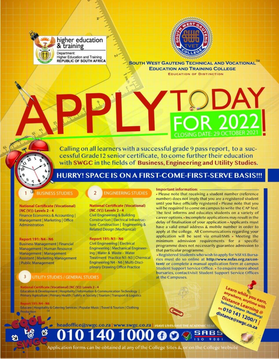 AdvertisementApply Today For 2022 at SWGC (AD) by Gauteng News ReporterAugust 5, 2021August 5, 2021 Share1