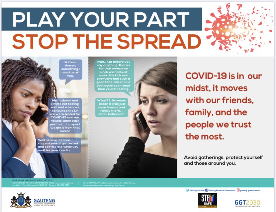 Advertisement#COVID19 | Avoid gatherings, protect yourself and those around you (AD). #PlayYourPart #COVID19SA #GAUTENGCOVID19 by Gauteng News ReporterAugust 3, 2020August 3, 2020 Share5
