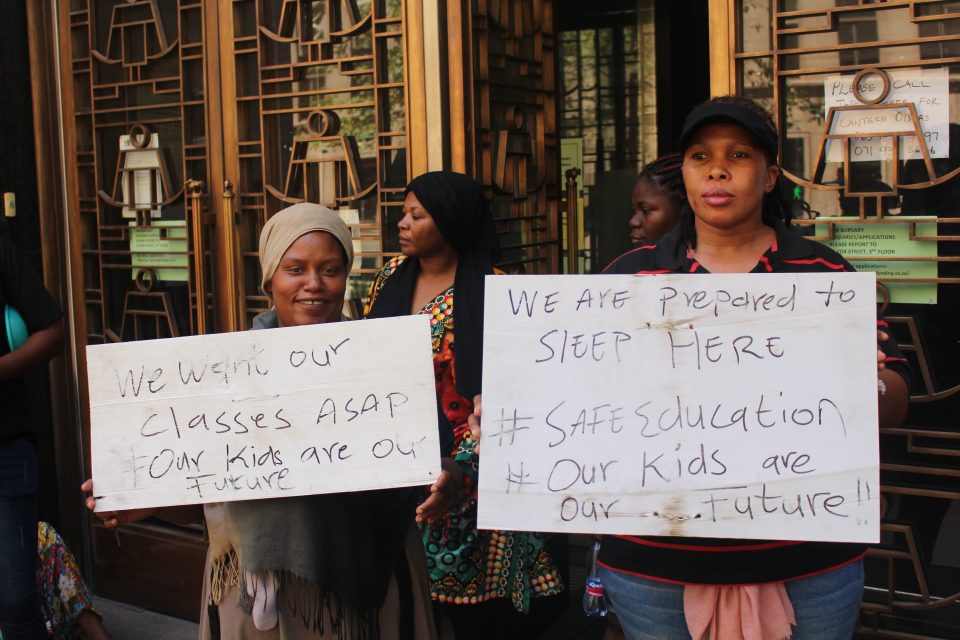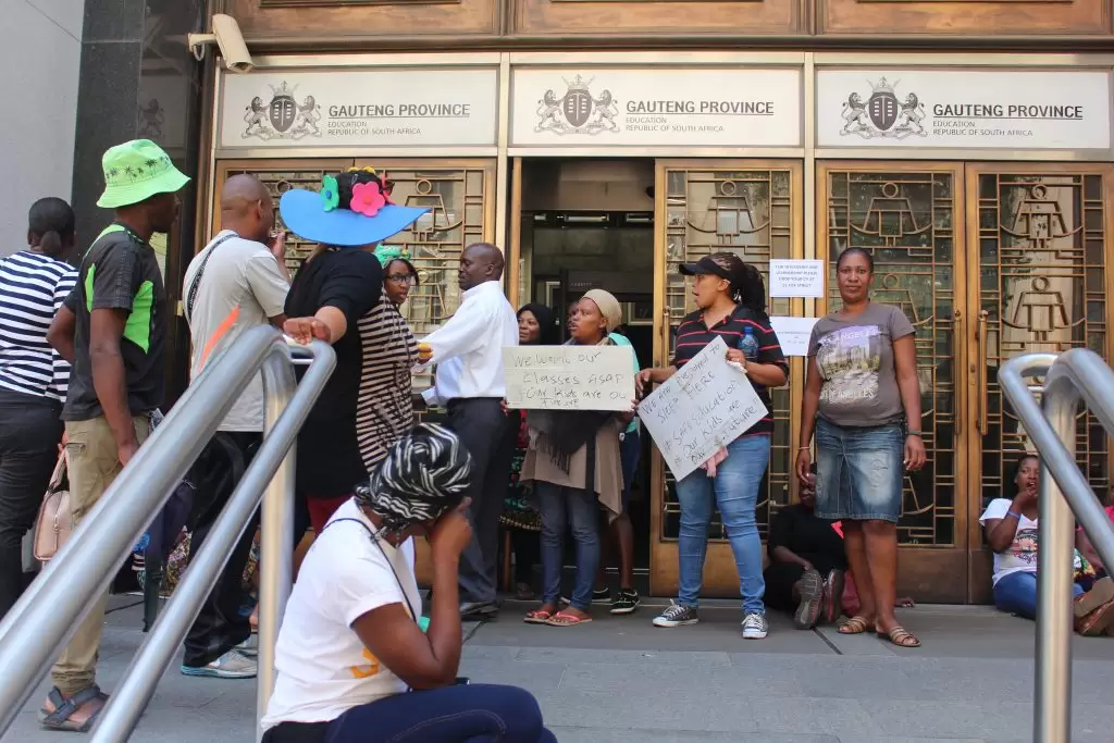 As schools enter their third week of learning disgruntled parents at La Rochelle Primary School took to the Gauteng Department of Education’s offices in protest. Parents are complaining about the school being too small to accommodate every learner and that there is a lack of sufficient mobile classrooms. According to one of the protesting parents, Patience Onyenali, the school’s main hall has been turned into one classroom that accommodates learners from three different grades.