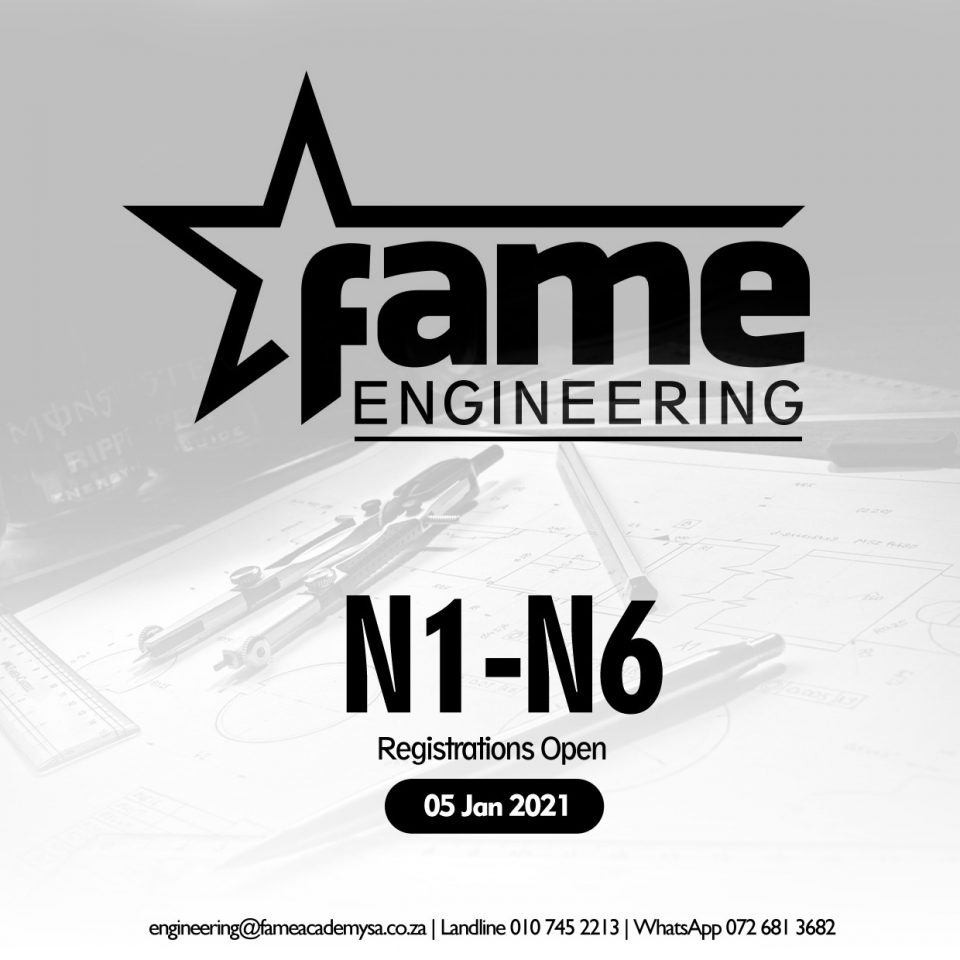 Those looking to make a career change or to brush up on any skills that FAME Academy SA offers, can register now and start as early as January. Registrations are now open for students who want to pursue engineering. Please email engineering@fameacademysa.co.za or WhatsApp 072 681 3682 or landline 010 745 2132 for inquiries.