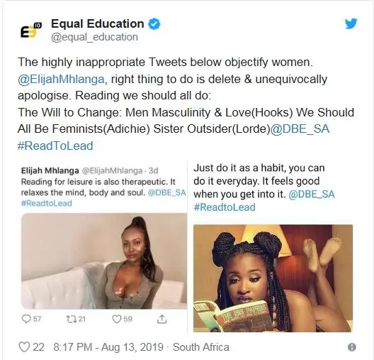 The department says while it commends initiatives to encourage learners to read more, it does not agree with the use of sexualised images of women to decorate campaigns.