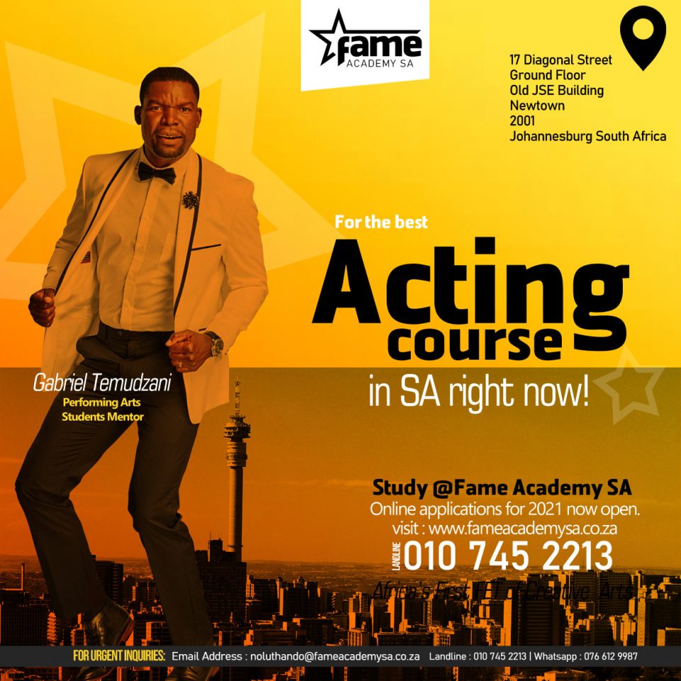 “I want to thank the FAME Academy SA for considering me amongst a plethora of many thespians in our fraternity. I’m equally excited that I’m going to work with our talented students, especially on the part of practice so that we produce the best, new generation of actors.”