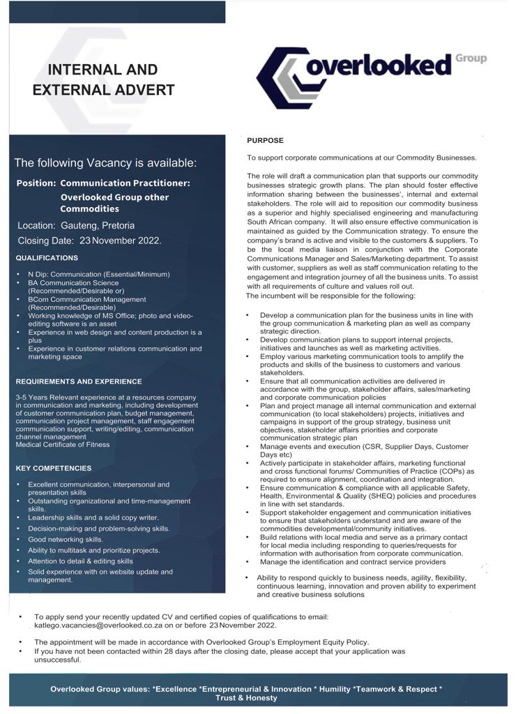 AdvertisementOverlooked Group has an exciting job position (AD) by Gauteng NewspaperNovember 14, 2022November 14, 2022 Share2