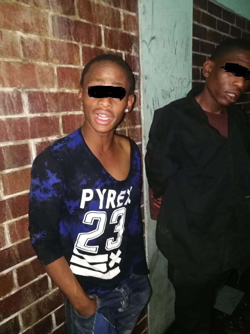 Police arrested two suspects between the ages of 23 and 28 for armed robbery, possession of a dangerous weapon and possession of suspected stolen property at Pink house, corner Albertina Sisulu and Nugget Street on Monday (22 of October 2019) at 11:00.
