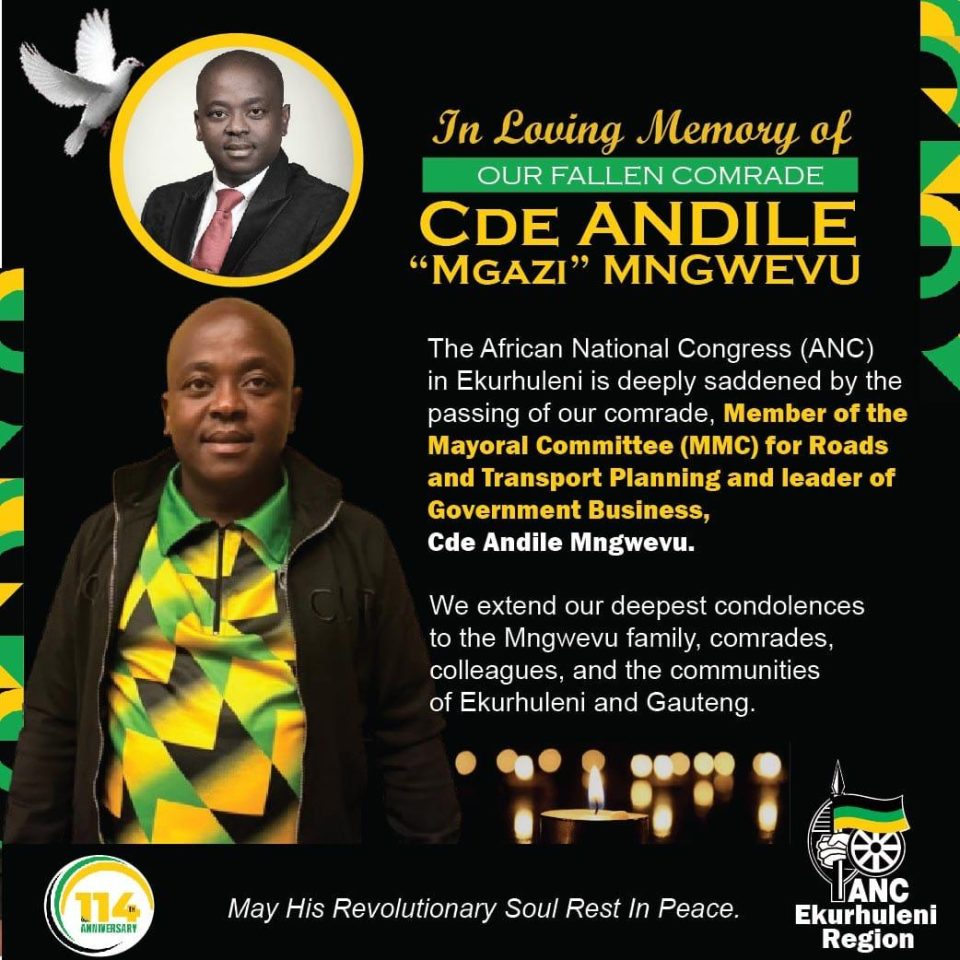 Condolences have been extended to the Mngwevu family, colleagues and the broader Gauteng community. Details regarding memorial services and funeral arrangements will be announced in due course.
