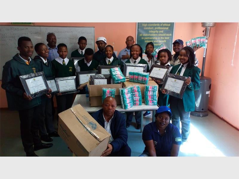 Rand Water, in partnership with law enforcement agencies from Vosloorus SAPS Youth Desk and Community Policing Forum (CPF) worked together and donated sanitary towels to various schools at Vosloorus.